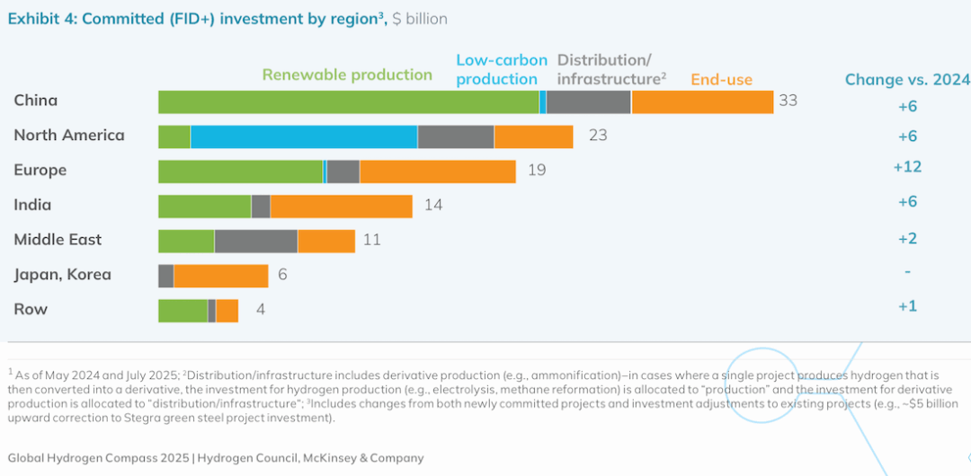 Vorreiter in fernost: Asiatische Länder investieren kumuliert mehr als 50 Milliarden Dollar in Wasserstoffprojekte. © Grafik aus Global Hydrogen Compass 2025