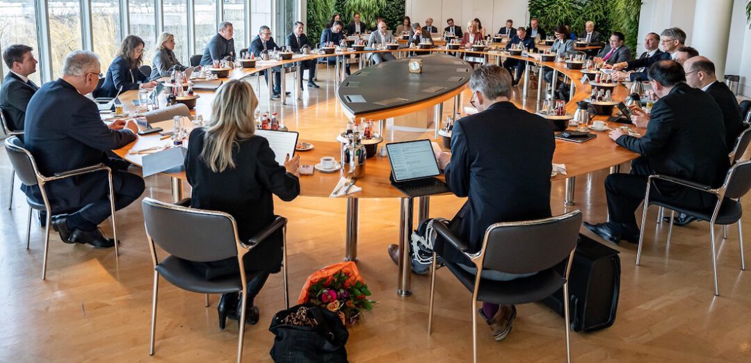 Bundesverkehrsminister Patrick Schnieder übergab am Rande eines Besuchs des Kabinetts der Bayerischen Staatsregierung in München Förderbescheide in Höhe von 54 Millionen Euro an Vertreter des geplanten ITZ-H2 in Pfeffenhausen. © Bayerische Staatskanzlei / Marc Conzelmann