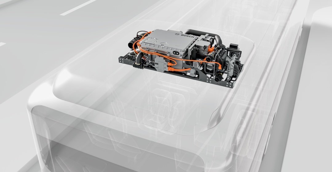 (Deutschland) Bosch hat unter der Bezeichnung „C100“ eine neue Variante seines Brennstoffzellen-Antriebssystems vorgestellt, die für alle Bustypen, insbesondere für städtische Busse geeignet seien. Damit ergänze das Unternehmen sein „Fuel Cell Power Module“-Portfolio (FCPM), dessen Leistungsspektrum von 100 bis 300 Kilowatt reicht. Die flache Bauweise mit einer Höhe von nur 40 Zentimetern ermögliche die für den europäischen Markt typische Dachmontage. Das System sei konzipiert für Stadtbusse mit 12 bis 18 Metern Länge und basiere auf der Variante FCPM C190 für Überland- und Reisebusse. Letztere gehe noch in der ersten Jahreshälfte 2026 in Demofahrzeugen in den Testbetrieb und werde wie ein Dieselmotor im Heck verbaut. Das FCPM C300 sei mit 300 Kilowatt Systemleistung auch für schwere Lkw passend. 2025 hatte Bosch den Markteintritt seines Hybrion PEM-Elektrolyse-Stacks zur Produktion von Wasserstoff verkündet. Darüber hinaus arbeite Bosch an der Technik für Wasserstoffmotoren und biete entsprechende Komponenten für die Saugrohr- und Direkteinblasung an.