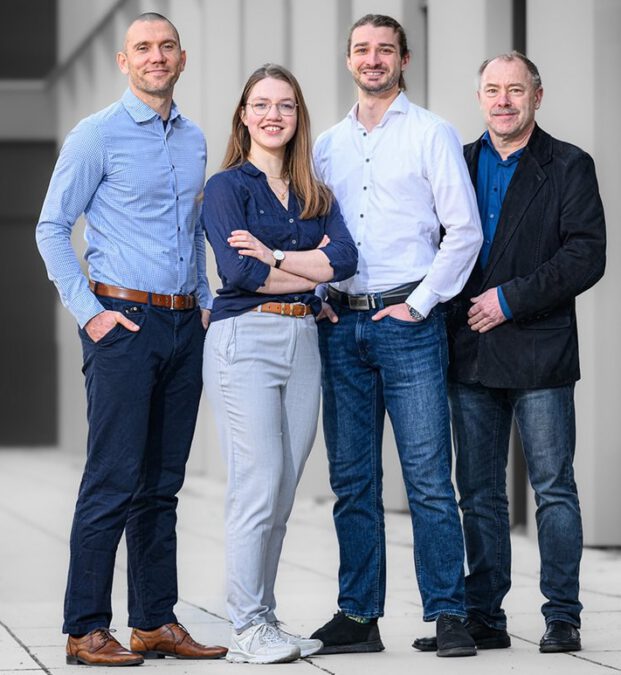 Projektteam Hy2Cycle an der HTWD: Mathias Jäckel, Paula Hanisch, Jannes Korneli und Uwe Kühsel. © HTWD / Peter Sebb